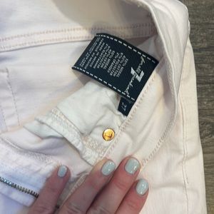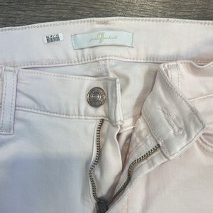 Very lightly worn pale pink 7 for all mankind ankle denim! The stretch and fabric of these is unreal! So cute for spring, mid to high rise! Absolutely no signs of wear and true to size 27 with so much comfort and stretch but still hold their shape!