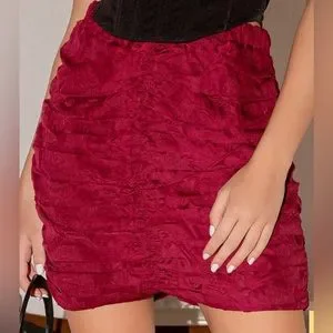 Lulus Wine Red Jacquard Ruched Mini Skirt Size XS NWT