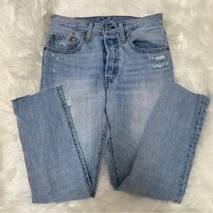 Levi’s Straight leg 501 ripped jeans. In great condition like new.