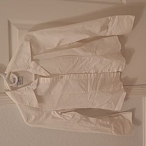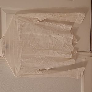 2 for 1 ladies' dress shirts. Long sleeve, button-down, with collars. One is size M (but fits like a S) and light, almost see-through cotton material (a cami underneath is recommended). The other is size S and thicker material. Both used in good condition (no tears or holes). Make offers- ALL proceeds go to charity.