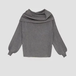 Zara Knit Off the Shoulder Grey Knit Sweater