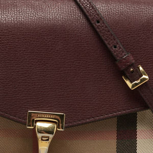 BURBERRY Burgundy House Check Canvas and Leather Macken Crossbody Bag