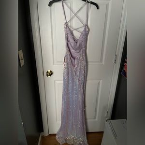 i bought the dress for prom but found a new one when i bought it and so i couldn’t return it because there is no return it’s never even been worn only tried on the tag is still on it and everything its a really pretty lavender color and its a small the back is open and it melts into your skin.