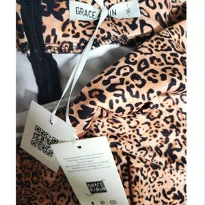New! Leopard print ruffle bodycon midi pencil skirt