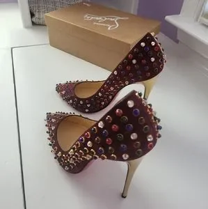 Christian Louboutin Follies Cabo Pumps in very good condition. All beaded spikes are complete