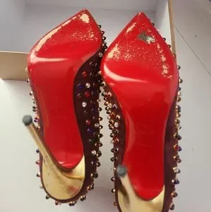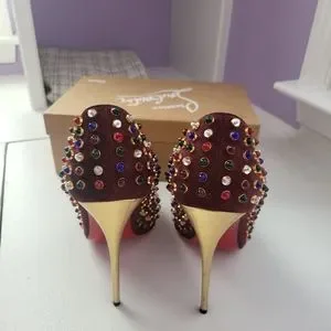 Gold and red stiletto heels has scuff, (photos)