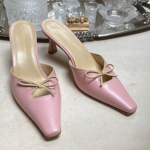Gorgeous soft pink with a neutral trim. Classy! Scuff mark on one toe (see photo) soles and heels in good condition. Made in Italy