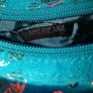 Brocade embroidered turquois mini purse. Americana by Shariff