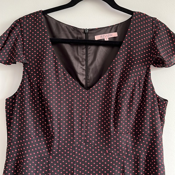 REVIEW Polka Dot Midi Dress. Black and Pink Colours, Fit and Flared.