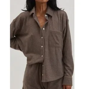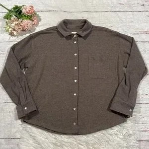 Donni Brushed Sweater Button Down Cho Brown Shirt Jacket Shacket