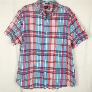 Rye by Hawker Rye Seersucker Plaid Button Front Short Sleeve size XL