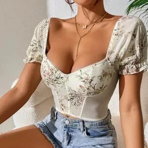 Boho Floral Embroidered Puff Sleeve Top