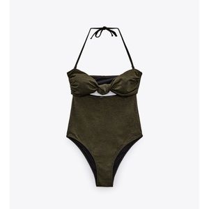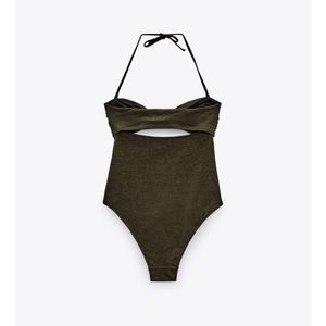 Zara KNOTTED SWIMSUIT KHAKI