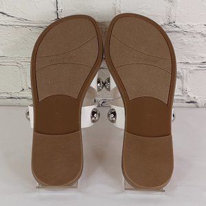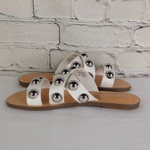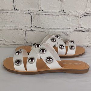 MARC FISHER 'BRYTE' DOMÈ STUDD CRISS~CROSS FLAT SLIP ON SLIDE SANDALS WHITE 7