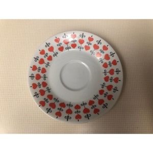 Retro Tea Cup and Saucer Set Fleur De Lis Relpo White with Red Hearts Black