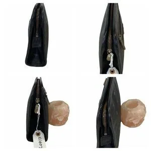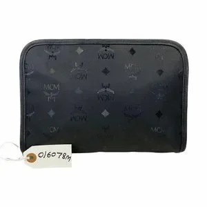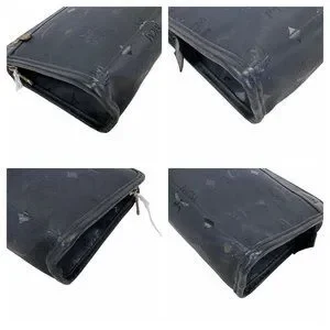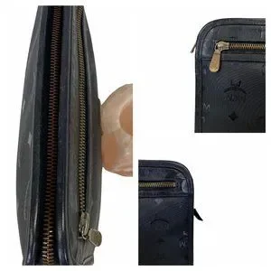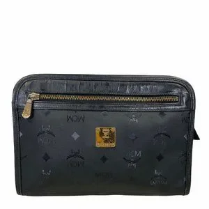 Authentic MCM Clutch Bag Black PVC Used Handbag Vintage On Sale