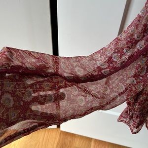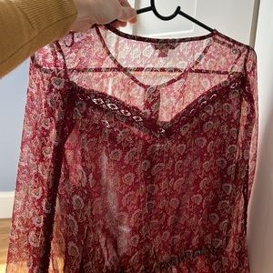 Woman’s Xsmall long sleeve sheer blouse. Arms are sheer and above the breast area. Great condition! You can either dress up or down ! 98 percent polyester and 2 percent lace. Super cute!