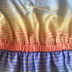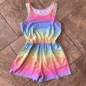 Multi-colored romper with razorback, very light pilling throughout, GREAT condition.