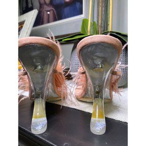 Jeffrey Campbell Flirt-Alot Feather Sandal Peach Clear Women's Size 8