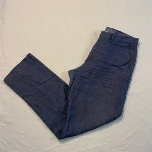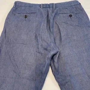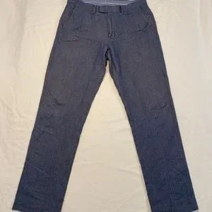 J Crew Bowery Slim Dress Pants Mens 32x32 Baird McNutt Irish Linen Blue.