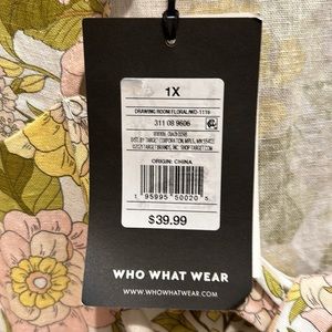 - Who What Wear™M. A simple pattern defines this dress, sewn into a swoosh that drapes perfectly on any figure. Elbow-length pout sleeves have petite cuffs; high neckline and deep ruffle hem are the bookends to an elegant flow cinched with a tie on the back.