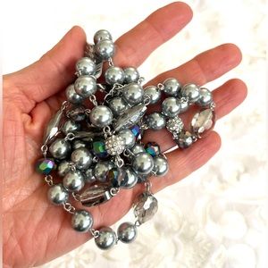 New long blue/gray shiny and sprinkle neckless.