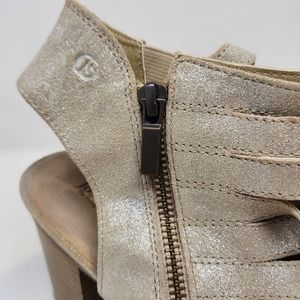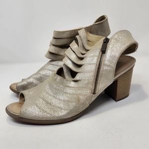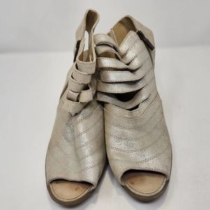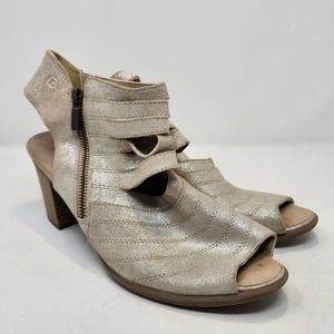 Josef Seibel Womens Bonnie Metallic Silver Leather Bootie 41 US 11 Peep Toe Heel