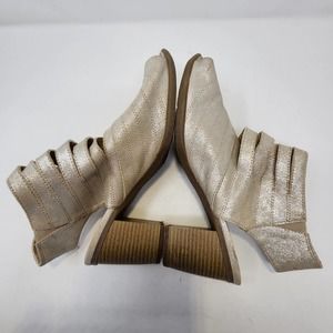 Josef Seibel women's Bonnie metallic silver leather ankle bootie boots, slingback, 3" block heel, peep toe, zipper closure, cut out details.