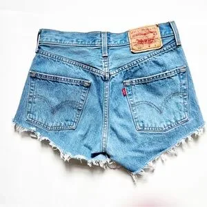 Vintage Levi's 501 Button Fly Shorts made in Mexico. Paper tag, 100% cotton. Listing these as size 28 based on my measurements.