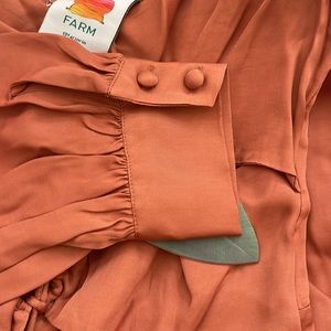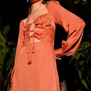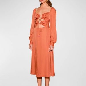NWT FARM Rio Caramel Cutout Front-Tie Satin Midi Dress Size S