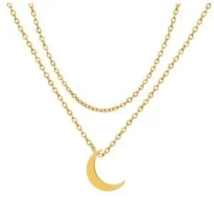 The Moon Child Layered Necklace is a beautiful piece of jewelry that features a minimalist design with multiple strands of delicate chains. Made from titanium steel, the necklace is both durable and resistant to tarnishing. The layered design includes a moon charm at the center, which adds a touch of celestial elegance to the piece. The necklace is gold plated with 18K gold, giving it a luxurious and polished look. The combination of the minimalist design and multiple strands creates a unique and eye-catching accessory that can be worn for any occasion. This necklace is perfect for those who appreciate a subtle yet stylish addition to their jewelry collection.