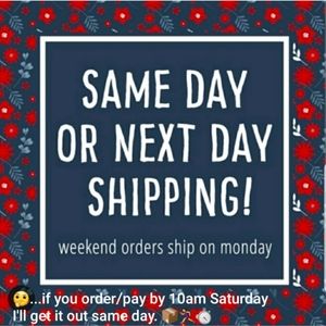 π I always package your items from my smoke free home with care and ship same/next day (USPS hours dependent) so that you may enjoy them as soon as possible. π¦πββοΈβ±