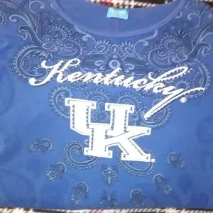 blue and white Kentucky rhinestones half sleeve tee with designs