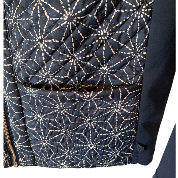 LULULEMON Shibari Sashiko Starburst Navy & White Quilted Zip V Neck Jacket
