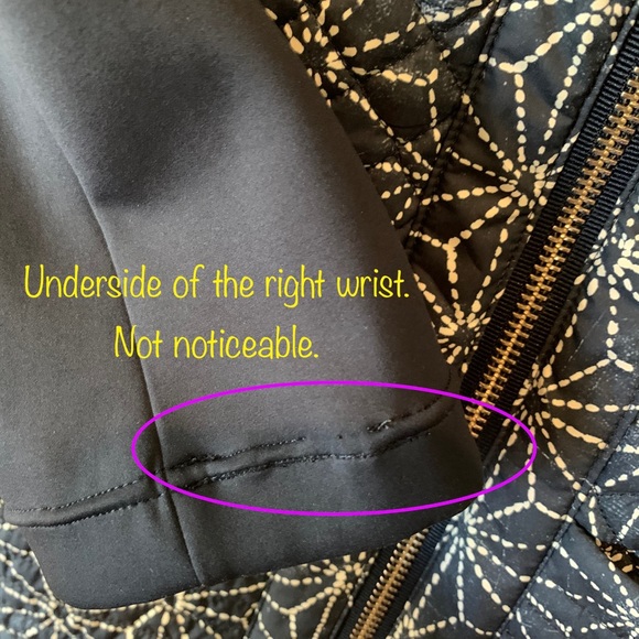 Please see picture for snag on underside of the right wrist. Unable to see while wearing it.
