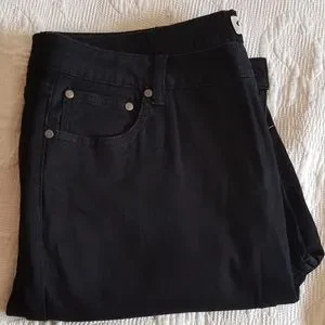 New but without tags are these Bohemian Traders black jeans. Very black, no fading. Size 38, equivalent to Aus size 20, see chart in pic plus my measurements. Full length, slightly tapered leg. Great classic pant to pair with anything, perhaps even for work. They have a little bit of stretch.