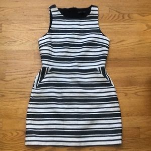 Banana Republic black & white sleeveless dress with pockets - above knee length - textured material - cut out back with zipper closure - fully lined - cotton/polyester blend -