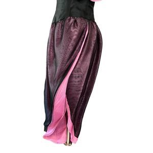 This is an absolutely Gorgeous and very RARE Piece by World Famous Designer BOB MACKIE (Cher, Carol Burnett, PINK circus costumes, etc.) I’ve looked everywhere and cannot find anything else like it! Asymmetrical, one shoulder neckline with a structured floral-esque sleeve adorned in a beautiful abstract floral pattern made of sequins and iridescent beading. Fit N Flair waist with a layered tulip high slit. The material is made of a lightweight cotton tulle. Exquisitely tailored with the elegance and opulence of the Incomparable BOB MACKIE.