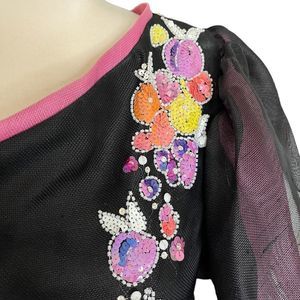 RARE Vintage Bob MACKIE One Shoulder Floral Beaded Tulip Drs 4/6