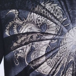 Serpent/Snake on the front of the shirt.