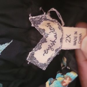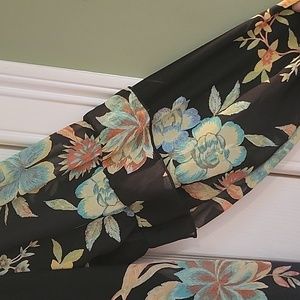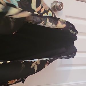 Black sheer with inside black lining drop shoulder floral dress in used great condition. sleeves have a one pleat in the middle. Length is approximately 35 inches, sleeve is approximately 24 inches and pit to pit is approximately 22 inches. Bundle up and save.