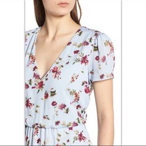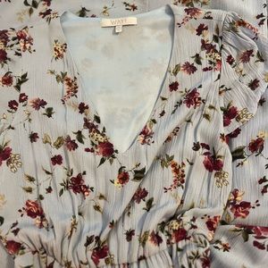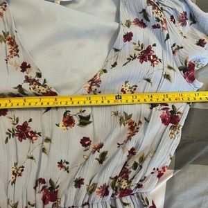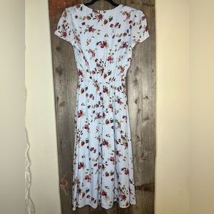 WAYF Blouson V Neck Blue Floral Print Midi Dress in Rayon Gauze sz S