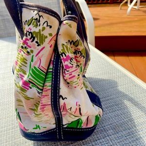 Vintage J. Crew Canvas Seaside Print Bag