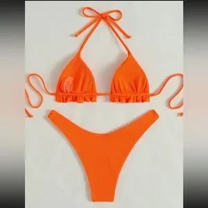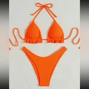 Ribbed Halter Triangle Bikini Swimsuit ✨🟧