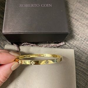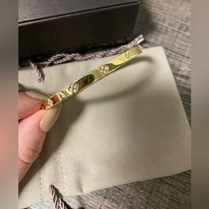 A fashionable bangle from the Verona Collection featuring .15ctw diamond flowers crafted in 18K yellow gold.