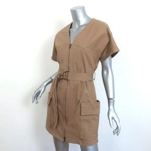 A.L.C. Bellamy Zip-Front Mini Dress Brown Stretch Twill Size 8 Belted Shift NEW