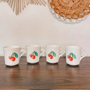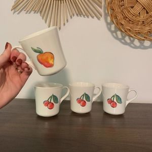 Set of 4 Vintage Corning Cherry & Peach Fruit Basket White Tea Cups