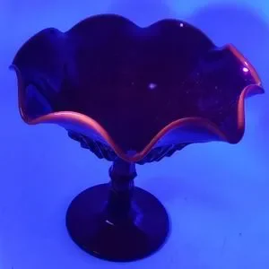 Vintage Viking Glass Bullseye Ruby Red Amberina Glowing edge footed Compote