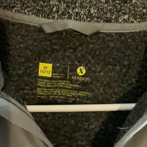Grey full zip hoodie. Brand is xerison. Size medium. A fleece inside, heavier feeling to it. Worn but in great condition.