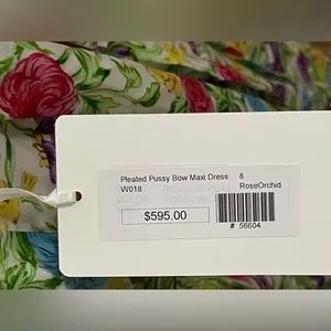 Les Reveries 100% Silk Rose Orchid Pleated Bow Maxi Dress Size 8
